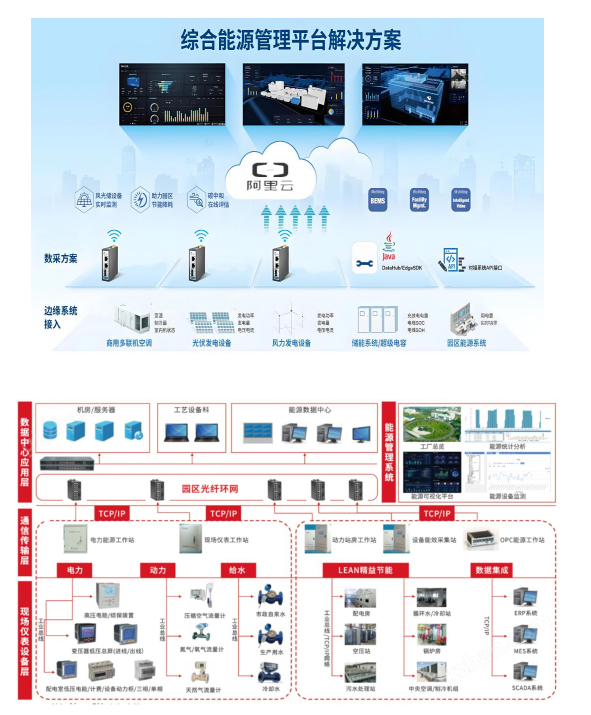 在工业制造领域:‌数字化综合能源管理平台主要用于能源监控、‌能效优化和节能减排。‌通过对工厂内各种能源设备的实时监控和数据采集,‌平台能够准确掌握能源使用情况,‌提供能效分析和优化建议,‌实现能源使用的自动调节和优化,‌降低能源消耗和排放,‌提高工厂的能源利用效率和环保水平。‌