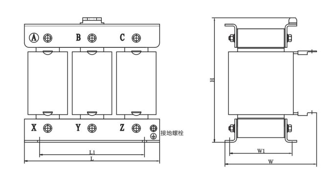 结构简单;结构设计合理,电抗器体积小,独特的散热通道设计,底脚安装孔通用性强,可两侧出线,可单侧出线,便于柜内安装。