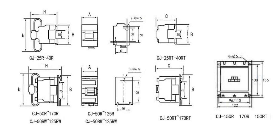 ·CJ-50R~CJ-125R提供三对辅触头,全部为2开1闭代号21型(可省略)。